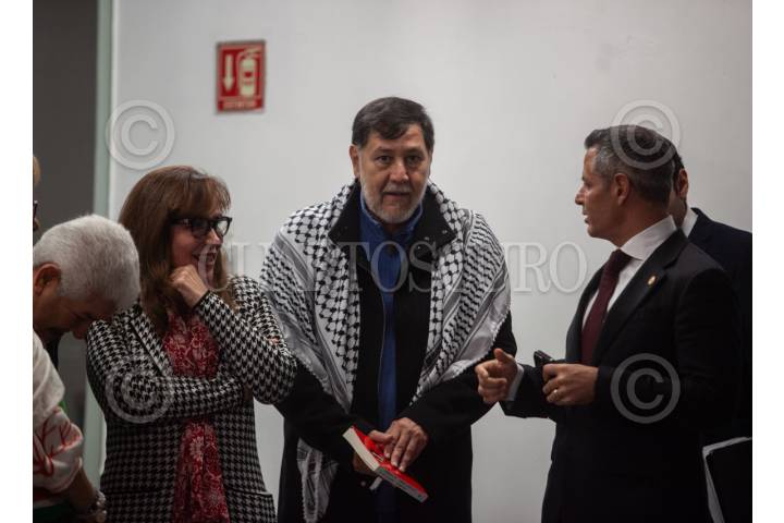 CIUDAD DE MÉXICO, 08OCTUBRE2025.- Gerardo Fernández Noroña y Senadores reciben a Juan Ramón de la Fuente, secretario de Relaciones Exteriores a su llegada a la Cámara de Senadores donde rendirá comparecencia. FOTO: ANDREA MURCIA /CUARTOSCURO.COM