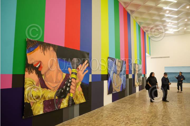 CIUDAD DE MÉXICO, 08OCTUBRE2025.- El Museo Tamayo alberga la exposición Alien Queen/Paraíso Extraño de Manuela Solano (Ciudad de México, 1987), la cual reúne más de treinta pinturas de gran formato inspirada en la cultura pop. La creadora explico que, aunque sus pinturas están inspiradas en personajes ficticios como Marge Simpson, preciso que realmente lo que quiere transmitir es lo que a ella le hacen sentir; la pintura a la que se refiere retrata a este personaje de la serie Los Simpson como un vestido Versace, el cual compró con los ahorros familiares para poder encajar en un sector de la sociedad y ser aceptada, enfatizando que por esta situación muchos de nosotros hemos pasado: “hacer cosas para poder encajar en un grupo”. La artista que perdió la vista por infección relacionada con el VIH que fue tratada negligentemente señaló que su obra es una invitación al espectador a reconocer esos íconos que nos rodean y como construimos nuestras identidades basándonos en ellos. FOTO: MOISÉS PABLO/CUARTOSCURO.COM