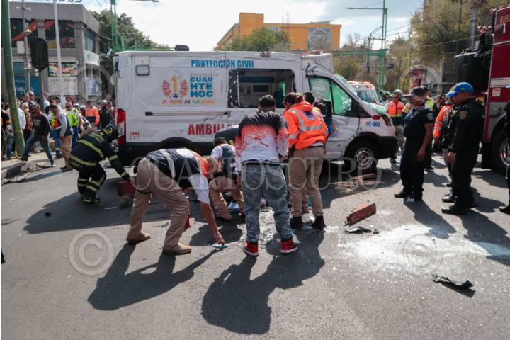 CIUDAD DE MÉXICO, 27NOVIEMBRE2025.- Un choque entre una ambulancia y un auto particular dejo un saldo de cinco personas heridas. Los hechos en el cruce de Eje Central y Fray Servando, en la alcaldía Cuauhtémoc. FOTO: ROGELIO MORALES/CUARTOSCURO.COM