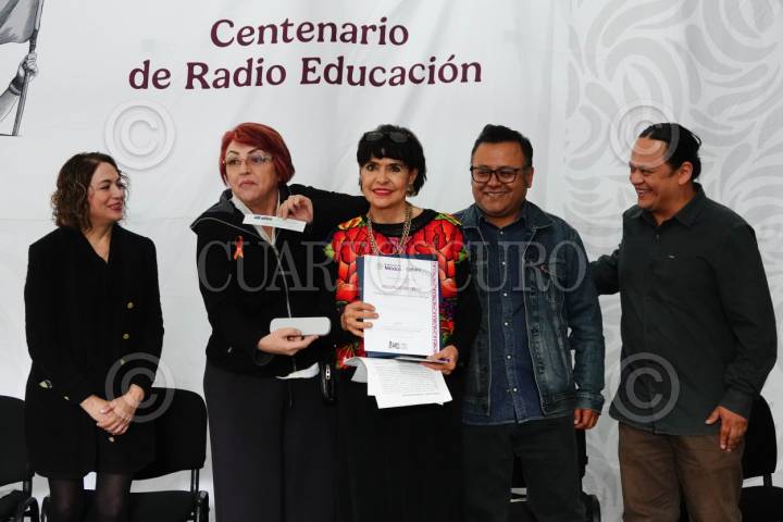 CIUDAD DE MÉXICO, 28NOVIEMBRE2025.- La Secretaría de Cultura otorgó un reconocimiento a Andrea Fernández Ortega por sus 45 años de servicio en Radio Educación, durante la Ceremonia del 101 Aniversario de Radio Educación. FOTO: CAMILA AYALA BENABIB / CUARTOSCURO.COM