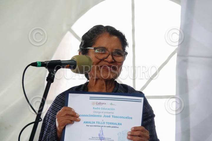 CIUDAD DE MÉXICO, 28NOVIEMBRE2025.- Amalia Tello Torralba en la Ceremonia del 101 Aniversario de Radio Educación recibiendo el reconocimiento José Vasconcelos por sus méritos en la radio pública. FOTO: CAMILA AYALA BENABIB / CUARTOSCURO.COM