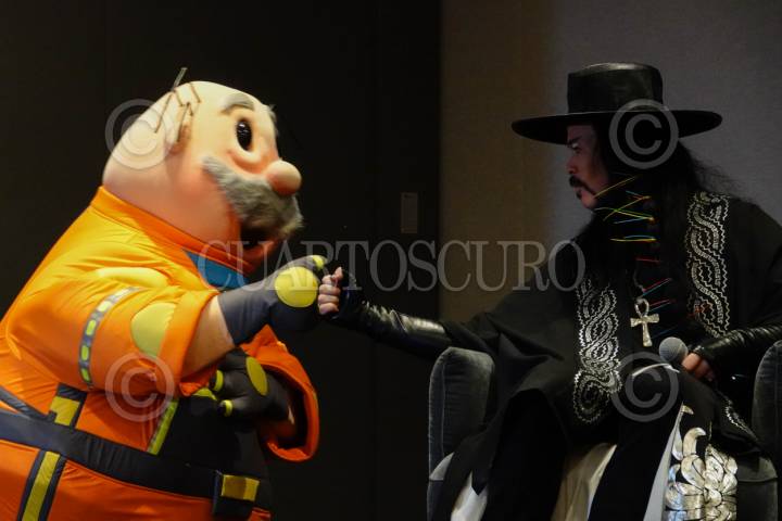 CIUDAD DE MÉXICO, 28NOVIEMBRE2025.- Se realizó una rueda de prensa con el representante y vocalista del grupo musical Empire of the Sun, Luke Steele en el Hotel Four Points by Sheraton. En el evento estuvieron presentes la locutora Susana Medina, del programa Mezclas Abruptas de Ibero 90.9, y Víctor González, CIO del Simifest, quienes dieron información sobre los festivales Chrysalys y Simifest, en los que Empire of the Sun será el grupo principal. FOTO: CAMILA AYALA BENABIB / CUARTOSCURO.COM