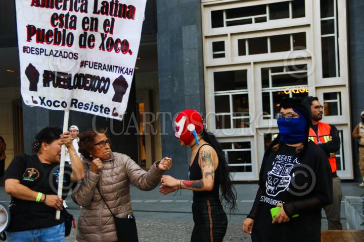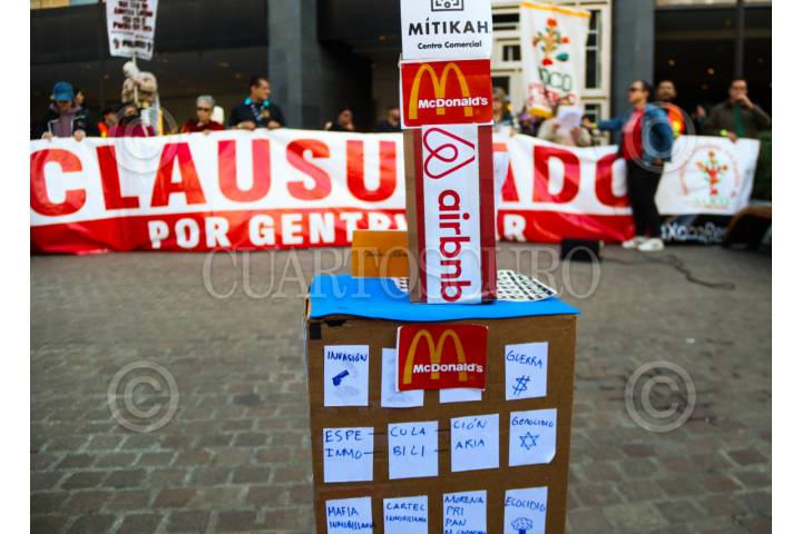 CIUDAD DE MÉXICO. 28NOVIEMBRE2025.- Pobladores de la Colonia Xoco, obrera y Santa Úrsula Coapa y Activistas anti Gentrificacion, a manera de protesta clausuraron la plaza Mítikah. FOTO: VICTORIA VALTIERRA/CUARTOSCURO.COM