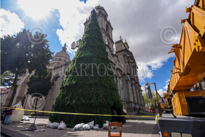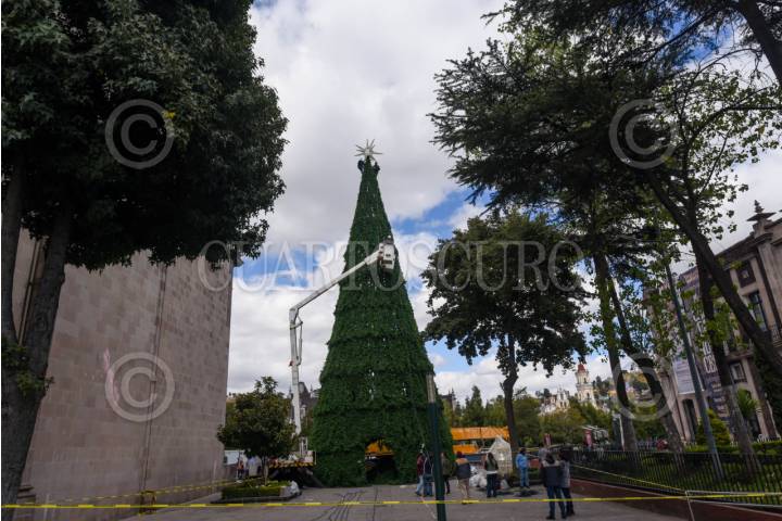 TOLUCA, ESTADO DE MÉXICO, 28NOVIEMBRE2025.- Instalan árbol de Navidad monumental en la ciudad de Toluca, previo a una serie de actividades que se realizarán en la capital mexiquense para los festejos decembrinos. FOTO: CRISANTA ESPINOSA AGUILAR/CUARTOSCURO.COM