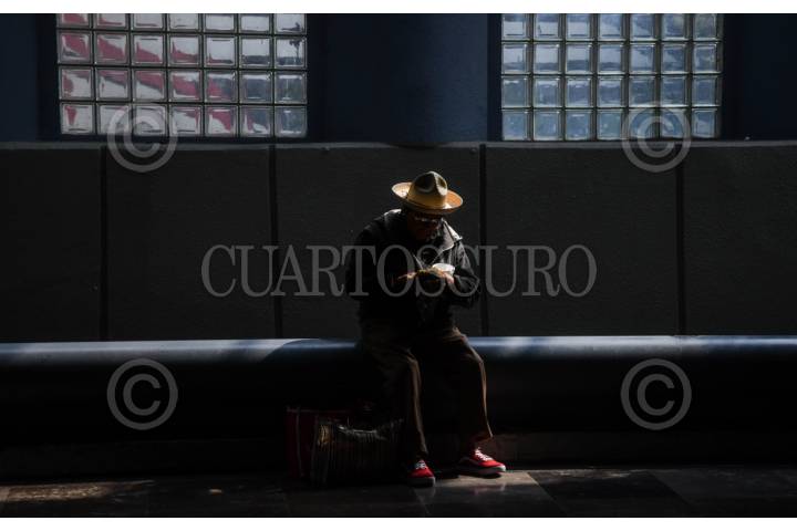 CIUDAD DE MÉXICO, 24DICIEMBRE2025.- Un hombre desayuna en las inmediaciones de la Terminal de Autobuses del Oriente (TAPO) y de la estación del metro San Lázaro. FOTO: MARIO JASSO /CUARTOSCURO.COM