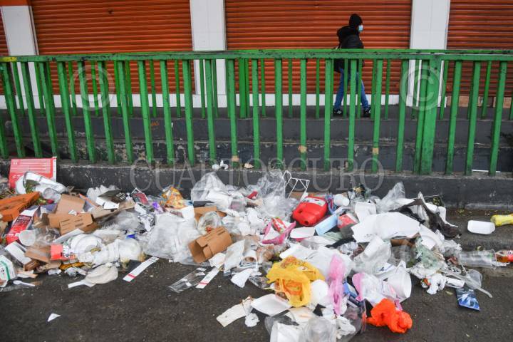 CIUDAD DE MÉXICO, 25DICIEMBRE2025.- Una mujer camina cerca de una acumulación de basura dejada sobre avenida Tlalpan. FOTO: MARIO JASSO/CUARTOSCURO.COM