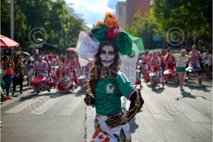 CIUDAD DE MÉXICO, 22MARZO2026.- Con la participación de cientos de personas se llevó a cabo el Desfile de Catrinas Mundialistas, que partió del Ángel de la Independencia hasta el Palacio de Bellas Artes. Como parte del ambiente mundialista que ya se vive en México a unos meses de arrancar la máxima fiesta del fútbol. FOTO: ALBERTO ROA/CUARTOSCURO.COM