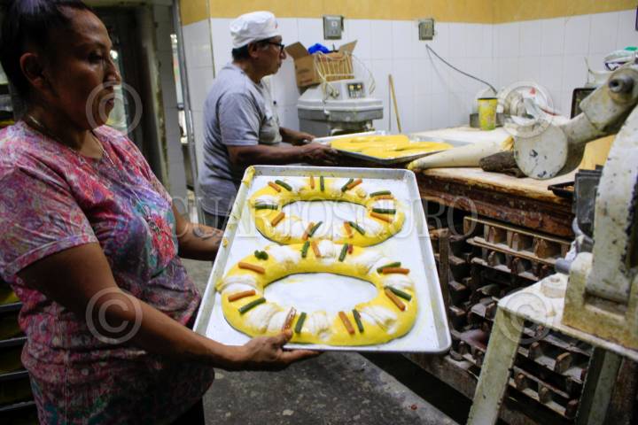 SAN LUIS POTOSÍ, SAN LUIS POTOSÍ, 04ENERO2026.- Las panaderías realizan su trabajo para esta temporada de rosca de reyes desde hoy. Como en la panadería "El Pollo" quienes desde hace más de 40 décadas realizan la rosca con la tradicional receta y que le gusta a la gente. FOTO: MARCELO PALACIOS/CUARTOSCURO.COM