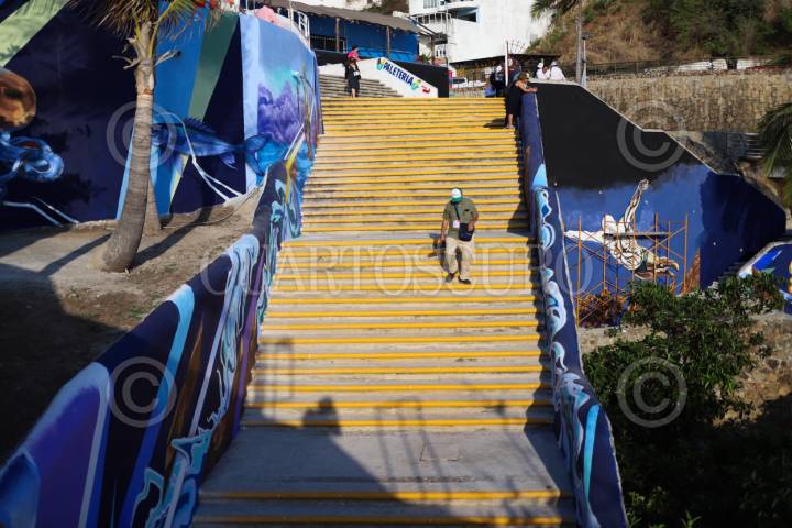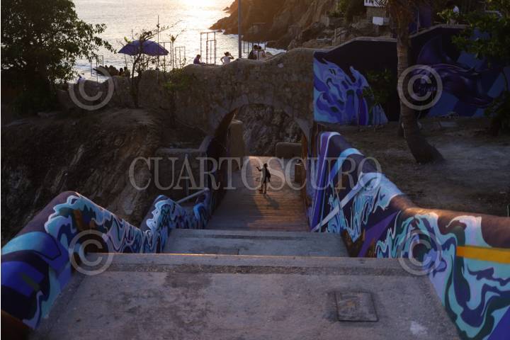 ACAPULCO, GUERRERO, 28ABRIL2026.- Continúan los trabajos de rehabilitación en la bahía de Acapulco, en el mirador de la Quebrada, se pinta un mural que aún se encuentra en proceso de conclusión. FOTO: DANIEL AUGUSTO/ CUARTOSCURO.COM