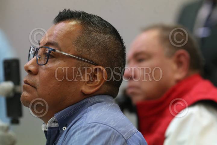 CUERNAVACA, MORELOS, 19NOVIEMBRE2025.- Conferencia de prensa quincenal del tema de seguridad publica en el Salón Bicentenario del Palacio de Gobierno. En la imagen, los periodistas Carlos Quintero y Francisco Cedeño quienes han sido amenazados por agrupaciones delincuenciales y elementos policiacos al realizar su labor. FOTO: MARGARITO PÉREZ RETANA/CUARTOSCURO.COM