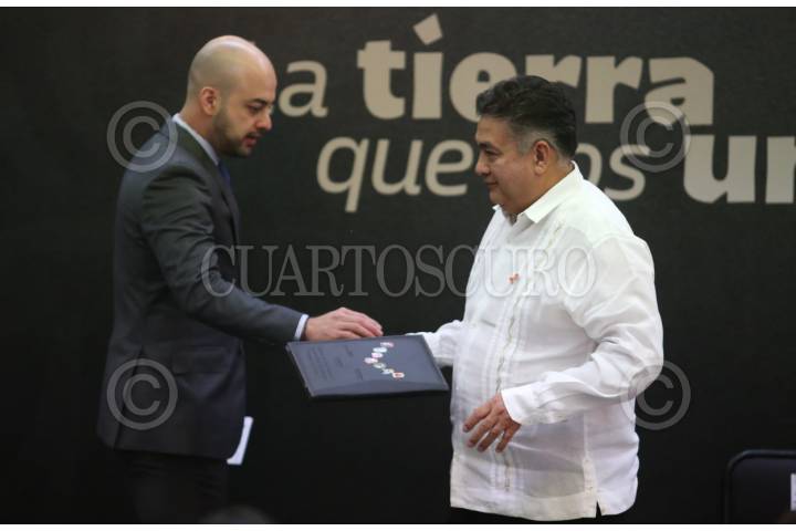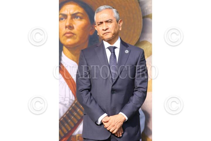 CUERNAVACA, MORELOS, 20NOVIEMBRE2025.- Fernando Blumenkron Escobar, Fiscal de Justicia de Morelos durante el evento por el 115 Aniversario del inicio de la Revolución Mexicana y la entrega del Premio Estatal del Deporte, realizado en la plaza armas. El evento fue encabezado por la gobernadora Margarita González Saravia y todo su gabinete y representantes de las fuerzas armadas. FOTO: MARGARITO PÉREZ RETANA/CUARTOSCURO.COM