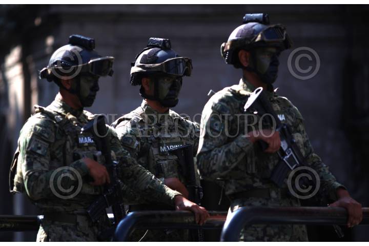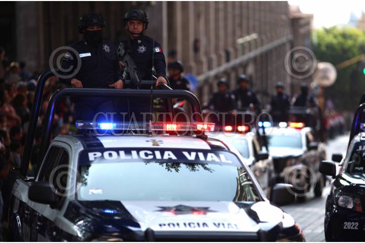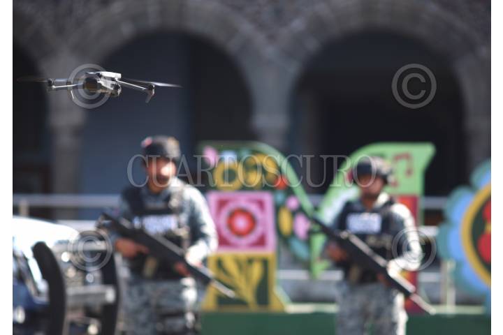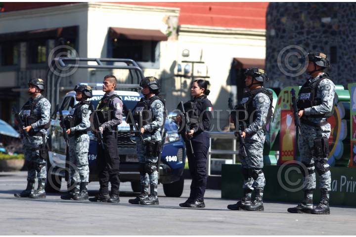 CUERNAVACA, MORELOS, 19NOVIEMBRE2025.- Elementos de la policía de Cuernavaca y de la Guardia Nacional participan en la grabación de un video promocional en la explanada del Museo de los Pueblos de Morelos. FOTO: MARGARITO PÉREZ RETANA/CUARTOSCURO.COM