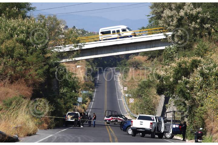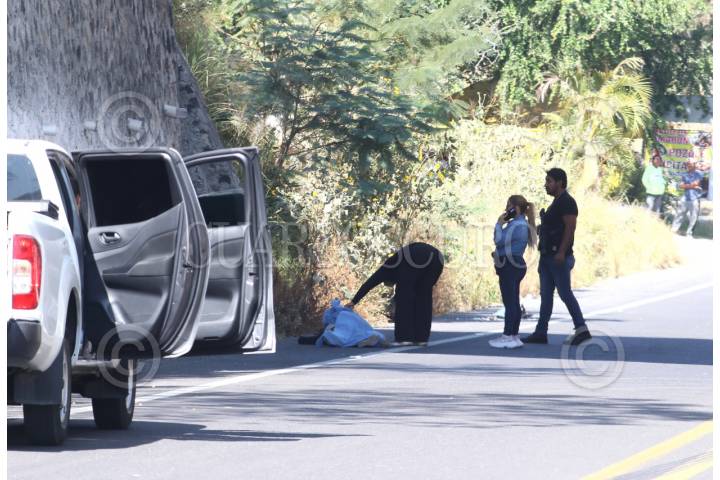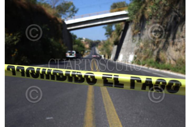 XOCHITEPEC, MORELOS, 24NOVIEMBRE2025.- Policías de Morelos resguardan el sitio donde una mujer de aproximadamente 50 años falleció luego de presuntamente caer desde un puente vehicular de mas de diez metros. Los hechos ocurrieron esta mañana en la carretera Aeropuerto de Cuernavaca, a la altura del kilometro 5. Sera la Fiscalía de Justicia quien determine la causa de fallecimiento de la mujer pues también existe la posibilidad de que la fémina haya sido atropellada. FOTO: MARGARITO PÉREZ RETANA/CUARTOSCURO.COM