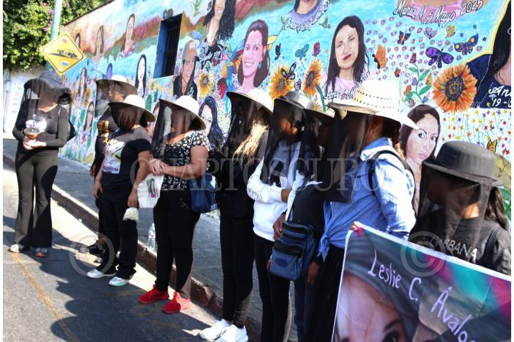 CUERNAVACA, MORELOS, 25NOVIEMBRE2025.- Madres, hermanas, hijas y familiares de mujeres victimas de feminicidio durante la inauguración del mural pintado en la ayudantía de Tlaltenango en el Dia Internacional de la Eliminación de la Violencia contra las Mujeres. El mural contiene los rostros de 25 mujeres de Morelos y otros estados victimas de feminicidio. FOTO: MARGARITO PÉREZ RETANA/CUARTOSCURO.COM