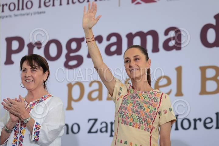 EMILIANO ZAPATA, MORELOS, 11ABRIL2026.- Margarita González Saravia, gobernadora de Morelos, y Claudia Sheinbaum Pardo, presidenta de México, durante la entrega de constancias de créditos liquidados como parte del Programa Vivienda para el Bienestar en el municipio de Emiliano Zapata, Morelos. FOTO: PRESIDENCIA/CUARTOSCURO.COM