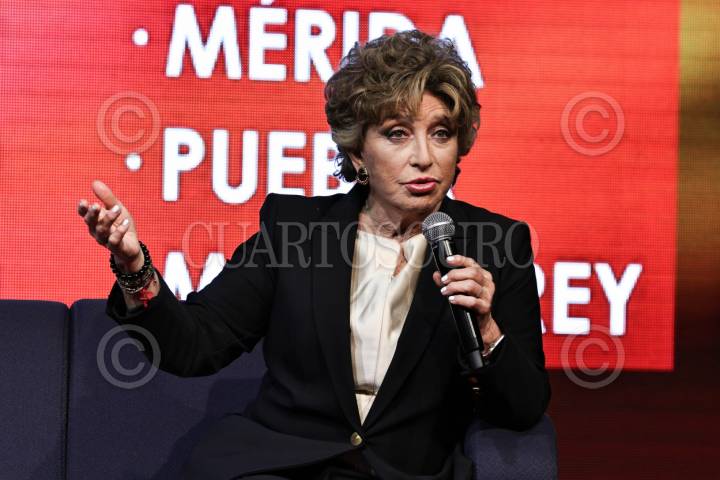 CIUDAD DE MÉXICO, 21ABRIL2026.- La directora ejecutiva de Amnistía Internacional México, Edith Olivares Ferreto, y la periodista Carmen Aristegui, encabezaron la presentación del informe ‘La situación de los derechos humanos en el mundo 2025/26’, en su capítulo México realizado por Amnistía Internacional, en este documento se incluye un balance sobre el primer año de gobierno de la presidenta Claudia Sheinbaum. La cita fue Casa Creatura. FOTO: CUARTOSCURO.COM