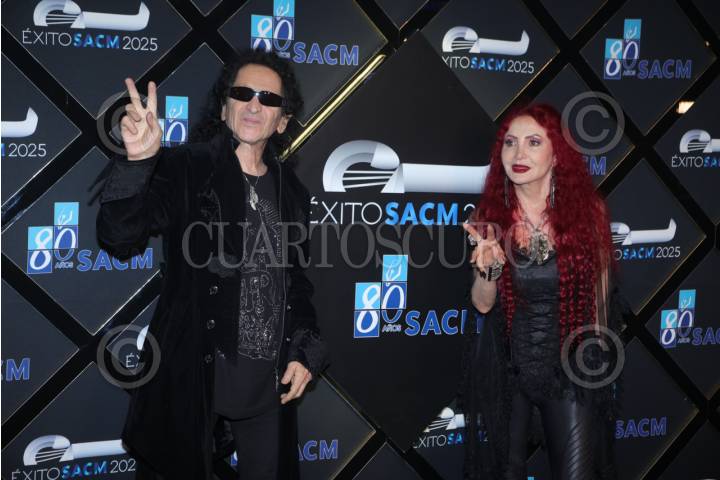 CIUDAD DE MÉXICO, 22OCTUBRE2025.- Alex Lora y Chela Lora a su llegada a la alfombra roja de los premios Éxito SACM 80 años, en El Cantoral. FOTO: EDGAR NEGRETE LIRA/CUARTOSCURO.COM