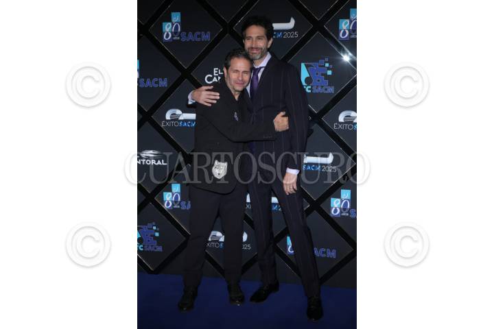 CIUDAD DE MÉXICO, 22OCTUBRE2025.- Rodrigo Dávila y Billy Méndez a su llegada a la alfombra roja de los premios Éxito SACM 80 años, en El Cantoral. FOTO: EDGAR NEGRETE LIRA/CUARTOSCURO.COM