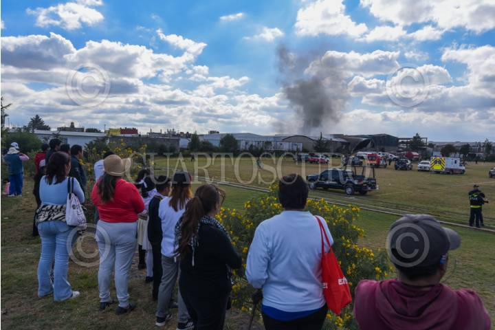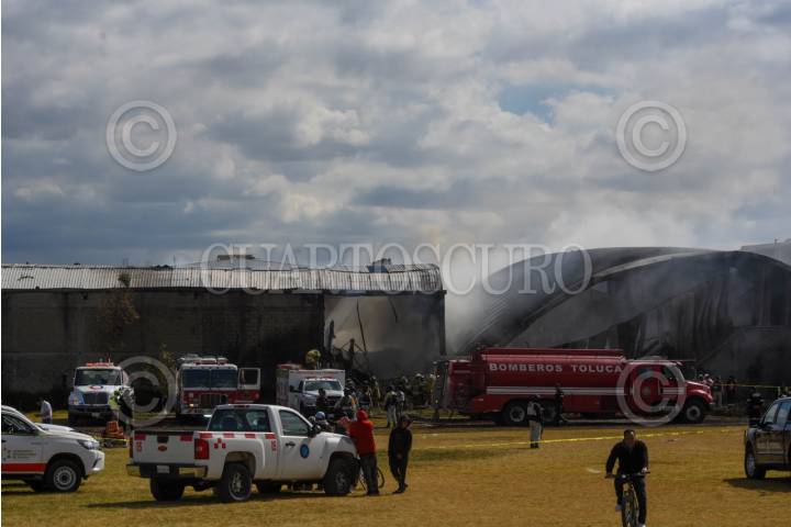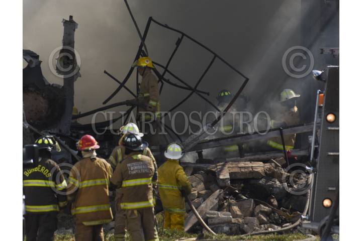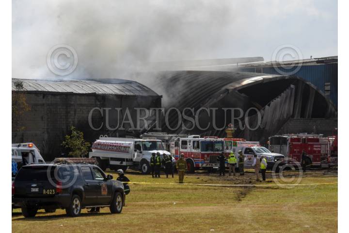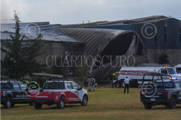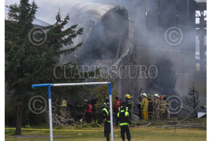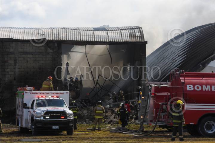 TOLUCA, ESTADO DE MÉXICO, 15DICIEMBRE2025.- Cuerpos de Emergencia laboran en la zona en donde se desplomó una aeronave en unas bodegas ubicadas en la Colonia Reforma, San Mateo Atenco, muy cerca del Aeropuerto Internacional de Toluca, a través de una ficha informativa se informó que la avioneta venía con 10 ocupantes, sin sobrevivientes; el lugar permanece resguardado por policías estatales, municipales, Guardia Nacional, Bomberos de Toluca, Protección Civil, Ejército. FOTO: CRISANTA ESPINOSA AGUILAR/CUARTOSCURO.COM