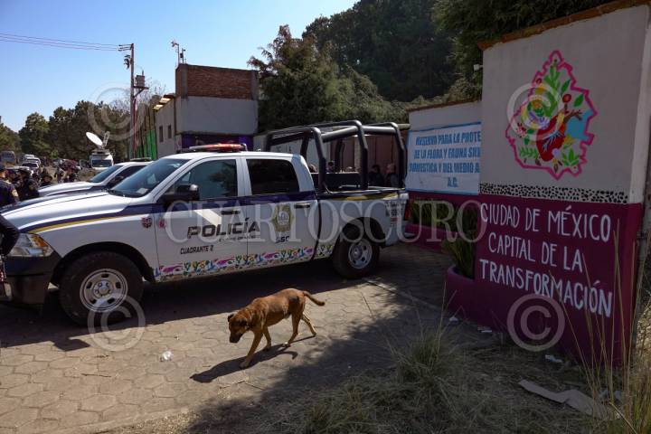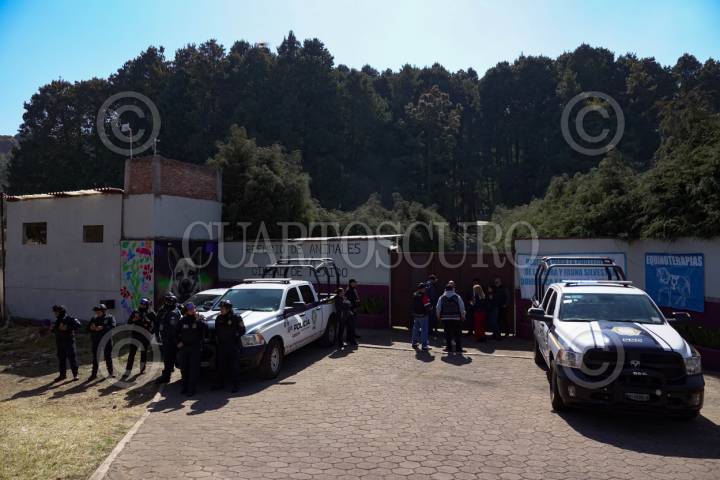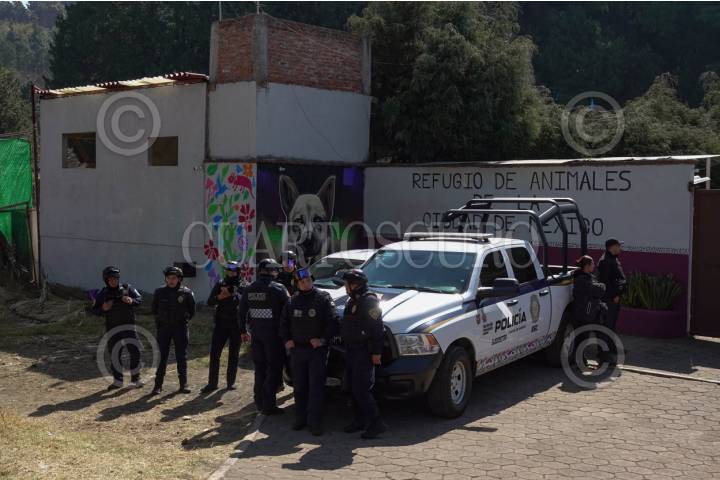 CIUDAD DE MÉXICO, 08ENERO2026.- Aspecto del resguardo policiaco para albergue de animales de la Ciudad de México ubicado en en el Ajusco al cual fueron llevados en resguardo 400 perros rescatados del Albergue Franciscano el día de ayer. FOTO: ROGELIO MORALES /CUARTOSCURO.COM