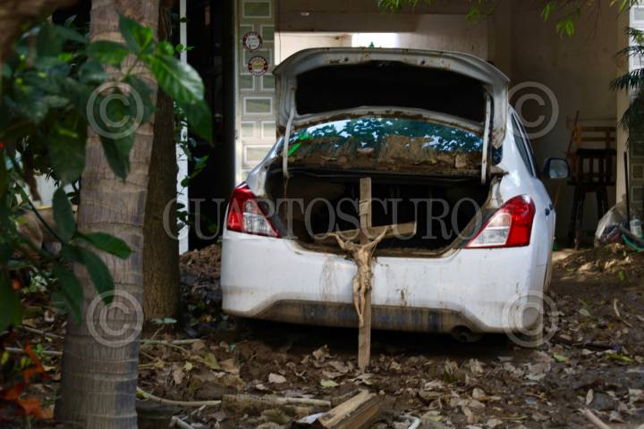 ÁLAMO, VERACRUZ, 24OCTUBRE2025.- La comunidad de Álamo fue una de las más afecatdas tras el desbordamiento del Río Cazones debido a las intensas lluvias que provoco la tormenta Raymond, los habitantes aun intentan rescatar lo que pueden de sus pertenencias, sin embargo al paso de los días señalan que no logran que sus hogares tomen la forma que tenían antes de la desbatación. Carros, ropa, muebles, figurad religiosas aun se observan afeura de los hogares esperando a ser limpiados o desechados. FOTO: ALAN SCHOLES/CUARTOSCURO.COM