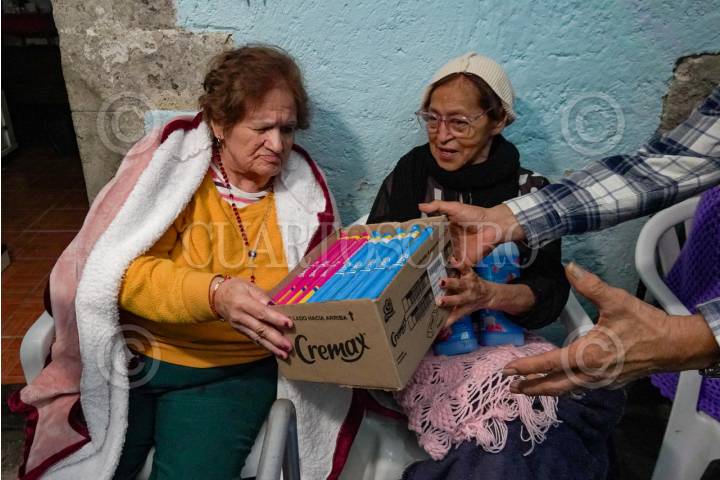 CIUDAD DE MÉXICO, 22DICIEMBRE2025.- Se llevó acabo la entrega de insumos para adulto mayores en la Casa de Ancianos Nuestra Señora de Guadalupe, ubicada en calle de Misioneros. FOTO: ROGELIO MORALES /CUARTOSCURO.COM