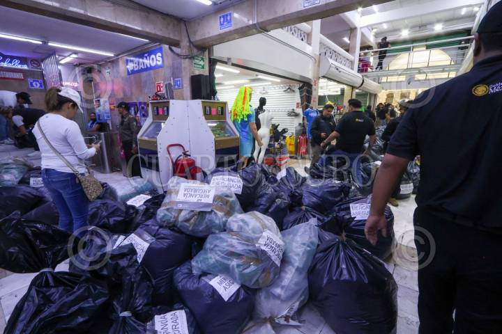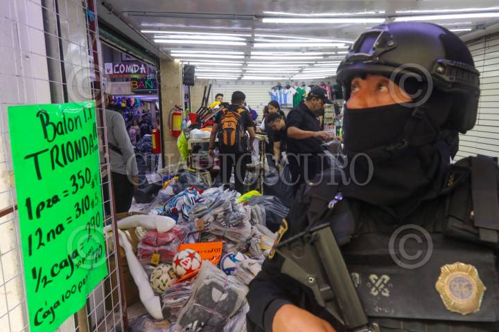 CIUDAD DE MÉXICO, 26MARZO2026.- El Instituto Mexicano de la Propiedad Intelectual (IMPI); la Fiscalía General de Justicia de la Ciudad de México, y elementos de la Secretaría de Seguridad Ciudadana, realizaron un operativo para decomisar mercancía futbolera apócrifa. En la acción fueron cateadas varias bodegas de Tepito en donde se aseguraron uniformes y balones, principalmente. FOTO: ROGELIO MORALES/CUARTOSCURO.COM
