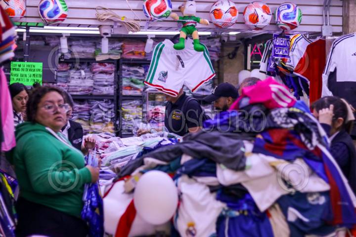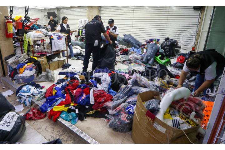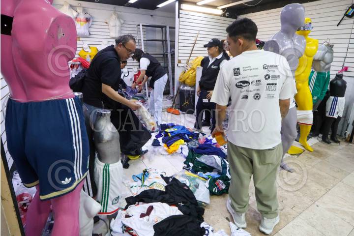 CIUDAD DE MÉXICO, 26MARZO2026.- El Instituto Mexicano de la Propiedad Intelectual (IMPI); la Fiscalía General de Justicia de la Ciudad de México, y elementos de la Secretaría de Seguridad Ciudadana, realizaron un operativo para decomisar mercancía futbolera apócrifa. En la acción fueron cateadas varias bodegas de Tepito en donde se aseguraron uniformes y balones, principalmente. FOTO: AXEL SÁNCHEZ/CUARTOSCURO.COM