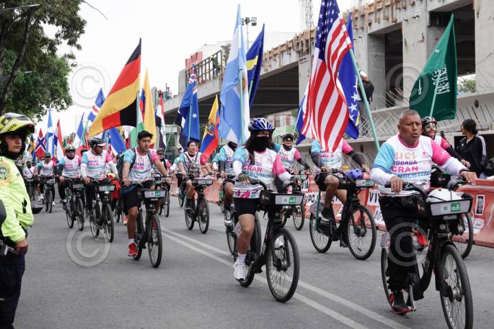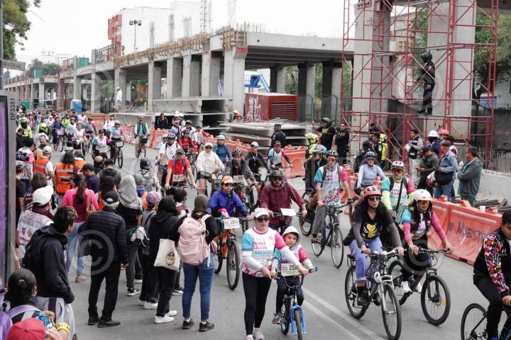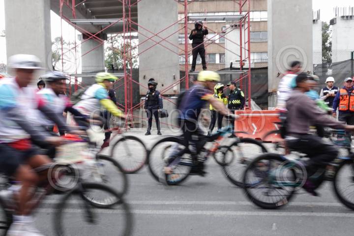 CIUDAD DE MÉXICO, 19ABRIL2026.- Ciclistas que transitaron frente a la protesta de trabajadoras sexuales y colectivos aliados contra la inauguración de la ciclovía Tenochtitlán. FOTO: CAMILA AYALA BENABIB / CUARTOSCURO.COM