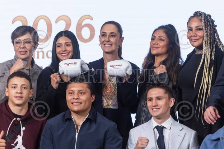 CIUDAD DE MÉXICO, 16FEBRERO2026.- Claudia Sheinbaum Pardo, Presidenta de México, anunció la creación de un programa para enseñar box a cien mil niños, clases que serán impartidas por boxeadores profesionales, a cambio el gobierno les dará una beca y los afiliara al IMSS. Las clases serán gratis. FOTO: MOISÉS PABLO/CUARTOSCURO.COM