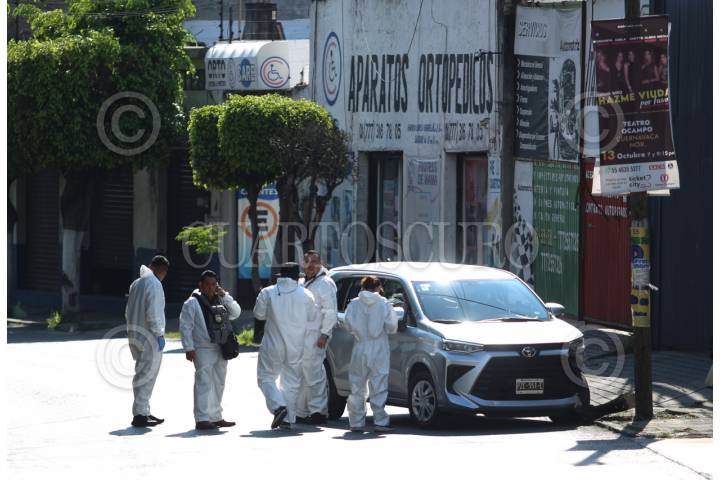 CUERNAVACA, MORELOS, 15OCTUBRE2025.- Investigadores de la Agencia de Investigación Criminal y peritos de la Fiscalía de Morelos realizan las diligencias para el levantamiento del cuerpo sin vida de un hombre que fue asesinado mientras conducía su vehículo. Los hechos ocurrieron esta tarde en la avenida Cuauhtémoc de la colonia Chapultepec, frente a una gasolinera y una plaza comercial, donde presuntamente dos hombres que se trasladaban en una motocicleta perpetraron el homicidio. Como es habitual en estos casos decenas de policías de Morelos, de la policía vial y la Guardia Nacional llegaron al sitio para participar en el acordonamiento de la zona. FOTO: MARGARITO PÉREZ RETANA/CUARTOSCURO.COM