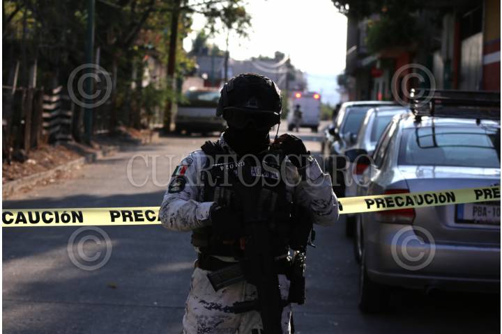 CUERNAVACA, MORELOS, 20JULIO2024.- Elementos de la Guardia Nacional resguardan el sitio donde fue localizado el cadáver de un hombre en la calle De la Estación, del poblado de Chamilpa, al norte de la capital de Morelos. El reporte se recibió durante la mañana, señalando que en la citada calle se encontraba el cuerpo de un hombre que no daba muestras de vida, al sitio llegaron los servicios de emergencia quienes constataron que la persona había fallecido presuntamente por una congestión alcohólica. Según vecinos el hombre era un bebedor consuetudinario. Personal de la Fiscalía de Justicia llegaron al sitio y se encargaron del levantamiento del cadáver que fue trasladado a la morgue en espera que sea reconocido y reclamado por algún familiar. FOTO: MARGARITO PÉREZ RETANA/CUARTOSCURO