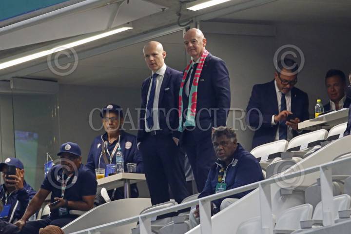 ZAPOPAN, JALISCO.. 26MARZO2025.- Giovanni Vincenzo Infantino Presidente de la FIFA, durante el Juego correspondiente al repechaje intercontinental entre las selecciones de Jamaica frente a Nueva Caledonia, para aspirar a un boleto mundialista Canadá; México y Estados Unidos 2026, dicho compromiso se lleva a cabo en el Estadio Guadalajara. FOTO: FERNANDO CARRANZA GARCIA / CUARTOSCURO.COM