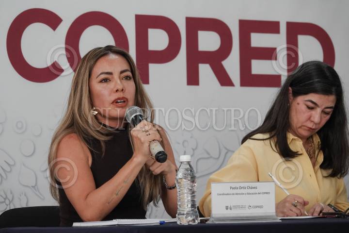 CIUDAD DE MÉXICO, 09ABRIL2026.- La coordinadora de Atención y Educación del COPRED, Paola Ortiz Chávez, y la presidenta del COPRED, Geraldina González de la Vega Hernández, durante la conferencia de prensa para la presentación del Informe de Casos de Atención Ciudadana 2025. FOTO: CAMILA AYALA BENABIB / CUARTOSCURO.COM