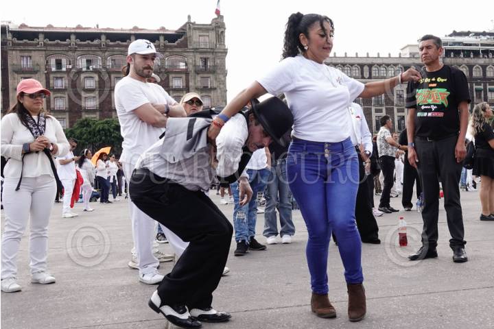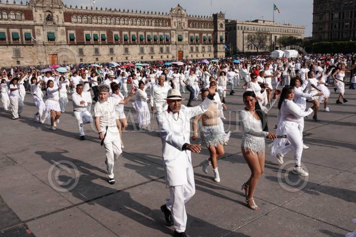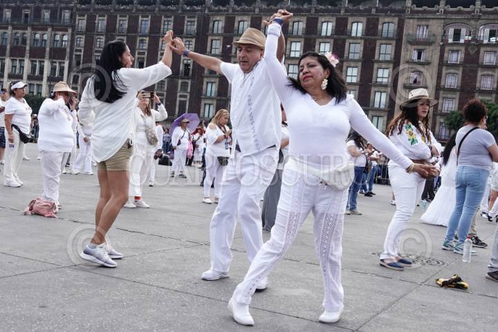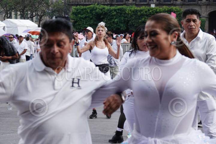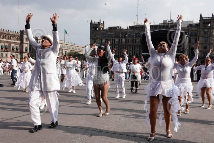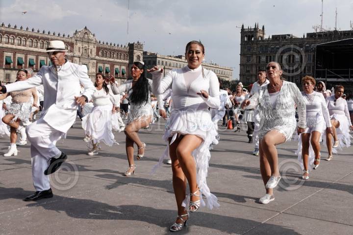 CIUDAD DE MÉXICO, 19ABRIL2026.- Se llevó a cabo una celebración en el Zócalo capitalino, donde se presentó la coreografía masiva “La rutina del pueblo” en el marco del Día Internacional de la Danza. En el evento participaron clubes de baile, la Red de FAROS y Centros Culturales, UTOPÍAS Ciudad de México y PILARES CDMX. FOTO: CAMILA AYALA BENABIB / CUARTOSCURO.COM