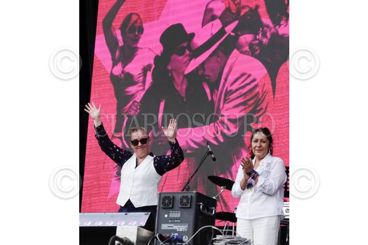 CIUDAD DE MÉXICO, 19ABRIL2026.- Se llevó a cabo una celebración en el Zócalo capitalino, donde se presentó la coreografía masiva “La rutina del pueblo” por el Día Internacional de la Danza, encabezada por la secretaria de Cultura de la Ciudad de México, Ana Francis López. FOTO: CAMILA AYALA BENABIB / CUARTOSCURO.COM