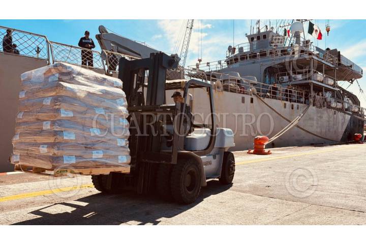VERACRUZ, VERACRUZ, 08FEBRERO2026.- Dos buques de la Secretaría de Marina partieron del puerto veracruzano para llevar a Cuba cerca de 814 toneladas de ayuda humanitaria, esto luego de que PEMEX suspendiera la venta de petróleo a la isla. FOTO: SRE/CUARTOSCURO.COM