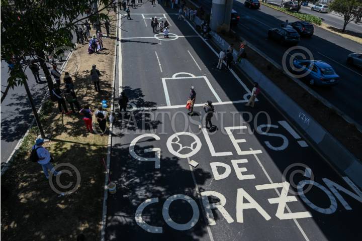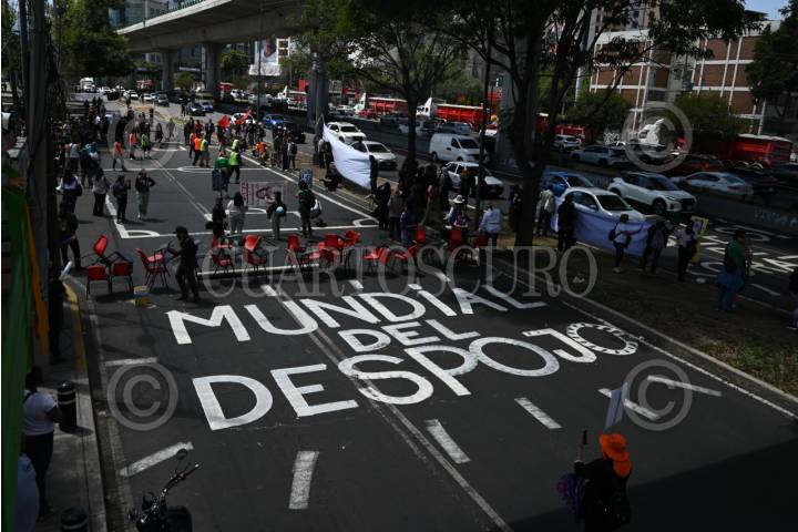 CIUDAD DE MÉXICO, 28MARZO2026.- Distintas luchas sociales se dieron cita en la ENAH para protestar contra la inauguración del mundial y del Estadio Banorte o Ciudad de México, bloquearon Periférico Sur. Por lo que se armaron las mega retas y otras actividades. FOTO: HAARON ÁLVAREZ/CUARTOSCURO.COM