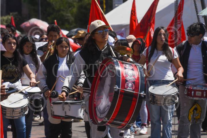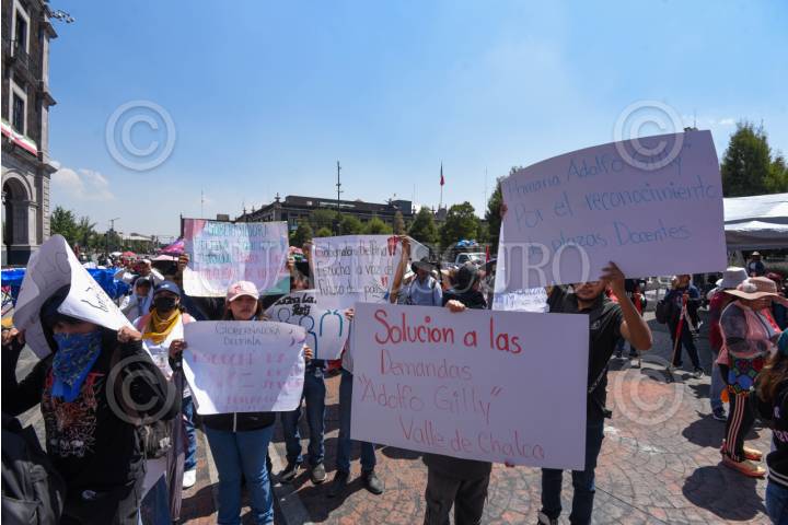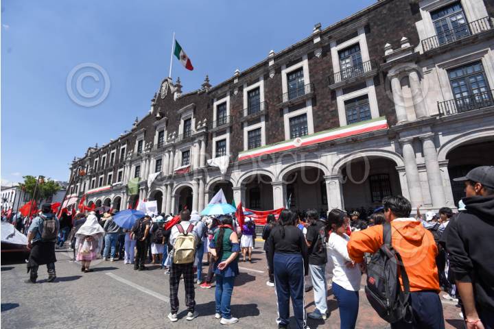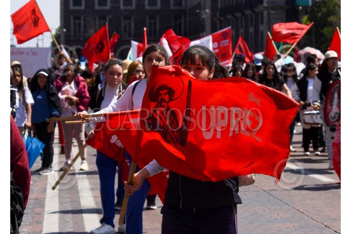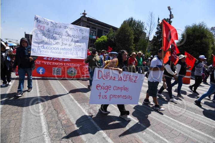 TOLUCA, ESTADO DE MÉXICO, 03MARZO2026.- Maestros, estudiantes y padres de familia de diversas escuelas de la entidad mexiquense integrantes de UPREZ realizaron una protesta y plantón frente a Palacio de Gobierno para exigirle a la gobernadora Delfina Gómez mayor apoyo a estas escuelas, solucionar las demandas de cada plantel. FOTO: CRISANTA ESPINOSA AGUILAR/CUARTOSCURO.COM