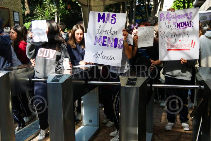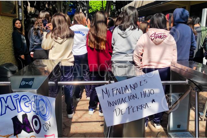 CIUDAD DE MÉXICO. 23MARZO2026.- Algunas jóvenes del Colegio del Valle salieron a exponer abusos y acosos por parte de profesores de esta institución, mientras sus padres estaban en reunión con el rector de esta escuela. FOTO: VICTORIA VALTIERRA/CUARTOSCURO.COM