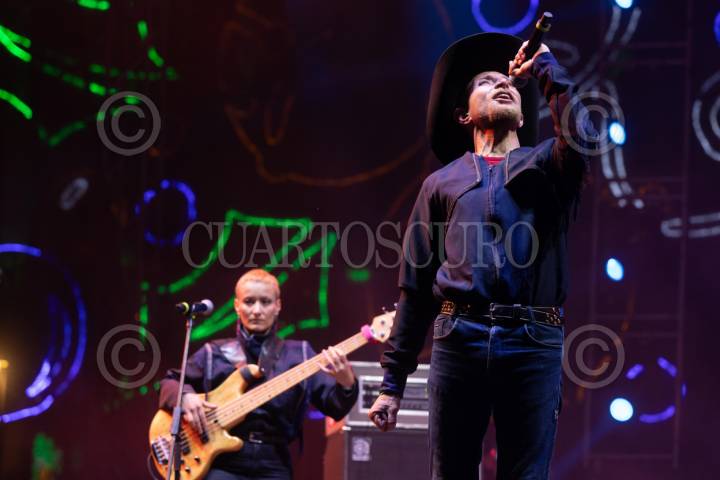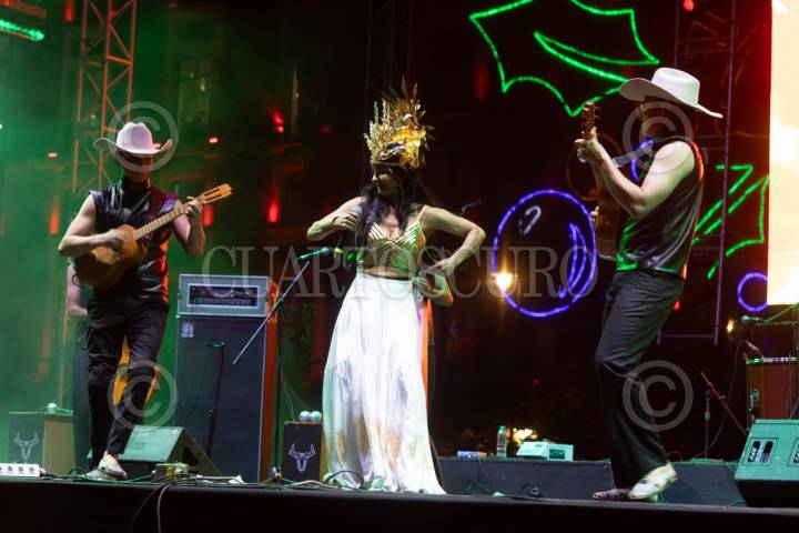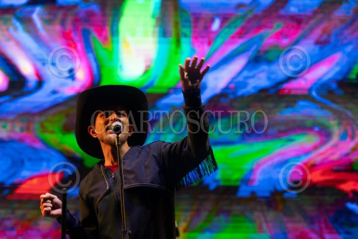 CIUDAD DE MÉXICO, 28DICIEMBRE2025. El grupo colombiano Chimo Psicodélico se presentó en el escenario del festival luces de Invierno en el Zócalo. FOTO: EDGAR NEGRETE LIRA/CUARTOSCURO.COM
