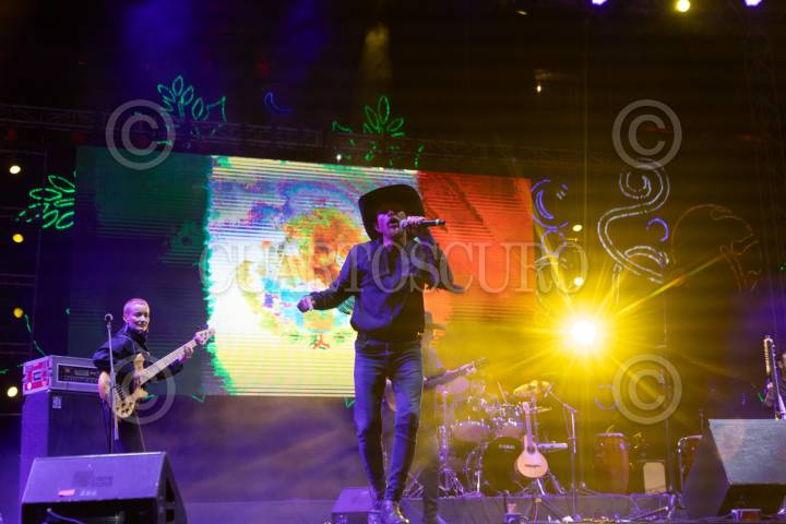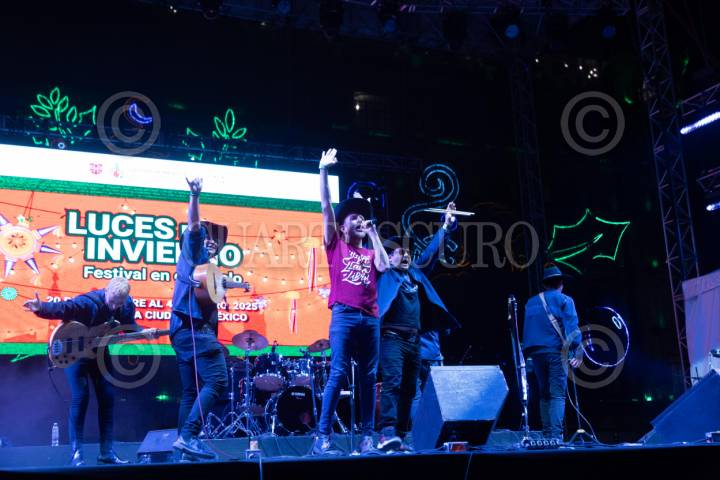CIUDAD DE MÉXICO, 28DICIEMBRE2025. El grupo colombiano Cimarrón se presentó en el escenario del festival luces de Invierno en el Zócalo. FOTO: EDGAR NEGRETE LIRA/CUARTOSCURO.COM