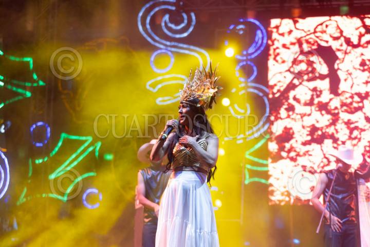 CIUDAD DE MÉXICO, 26DICIEMBRE2025. La cantante guatemalteca Baby Volcano durante su presentacion en el festival "Luces de invierno en el zócalo". FOTO: EDGAR NEGRETE LIRA/CUARTOSCURO.COM