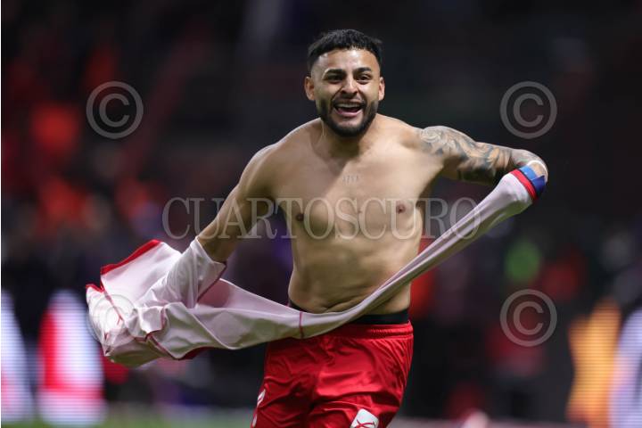 TOLUCA, ESTADO DE MÉXICO, 14DICIEMBRE2025.- El Deportivo Toluca se consagra Bicampeón del futbol mexicano tras derrotar a Tigres en el Estadio Nemesio Diez. Alexis Vega festeja el gol con el cual derrotan a Tigres. FOTO: EDGAR NEGRETE LIRA/CUARTOSCURO.COM