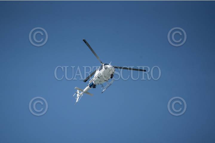 TIJUANA BAJA CALIFORNIA 19SEPTIEMBRE2025.-Helicóptero de la Fuerza Estatal de Seguridad Ciudadana volando durante el simulacro. Por primera vez se realizó un simulacro de tsunami en Playas de Tijuana, con la participación de 100 personas, así como elementos de Bomberos y Protección Civil Municipal. El ejercicio incluyó el cierre de vialidades desde el Faro y simuló un tsunami de magnitud 9.5 con epicentro en Hawái, lo que daría un margen de 30 minutos para evacuar. Personal de Protección Civil brindó información preventiva a los asistentes, en el marco de la conmemoración por los 40 años del sismo de 1985. FOTO OMAR MARTÍNEZ / CUARTOSCURO.COM
