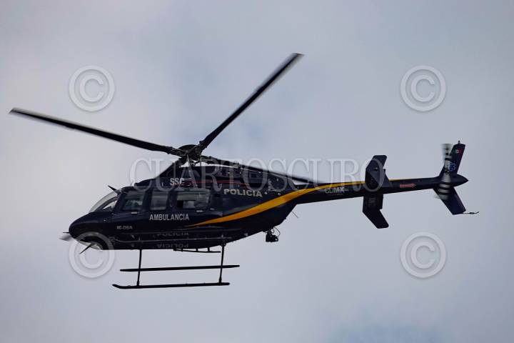 XALAPA, VERACRUZ, 29ABRIL2025.- Un policía herido en un enfrentamiento en Tlapacoyan fue trasladado de emergencia en helicóptero hasta el Estadio Xalapeño, en la capital del país. Desde el punto fue trasladado a la clínica 11 del IMSS, donde permanece hospitalizado. FOTO: YERANIA ROLÓN/CUARTOSCURO.COM