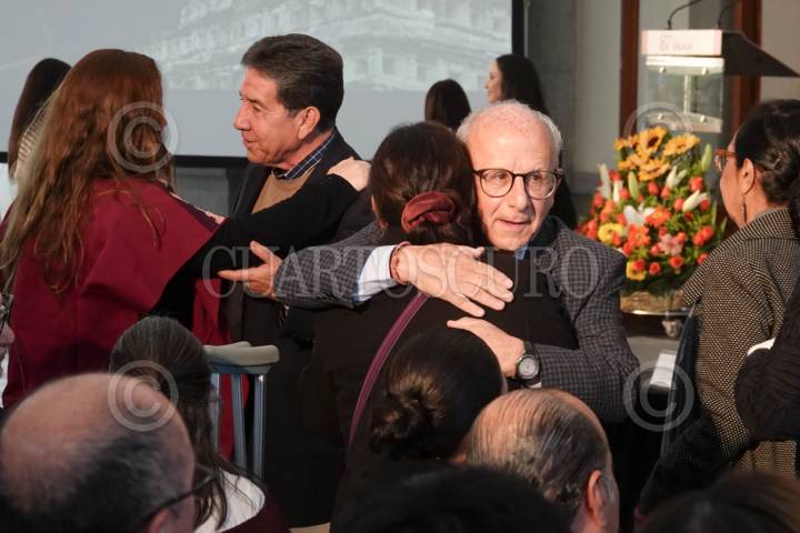 CIUDAD DE MÉXICO, 03FEBRERO2026.-Se llevó a cabo la celebración por el 87 aniversario del Instituto Nacional de Antropología e Historia (INAH) en el Alcázar del Museo Nacional de Historia, Castillo de Chapultepec. Durante el evento, el director del INAH, Omar Vázquez Herrera, y la secretaria de Cultura, Claudia Curiel de Icaza, entregaron reconocimientos a trabajadores del instituto. En la imagen la etnologa y antropóloga Maya Lorena Ruiz recibiendo un reconocimiento por su trayectoria y labor. FOTO: CAMILA AYALA BENABIB / CUARTOSCURO.COM
