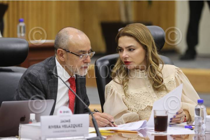 CIUDAD DE MÉXICO, 05MARZO2026.- Los consejeros Jaime Rivera y Carla Humphrey en la sesión extraordinaria del Consejo General del INE. FOTO: INE/CUARTOSCURO.COM