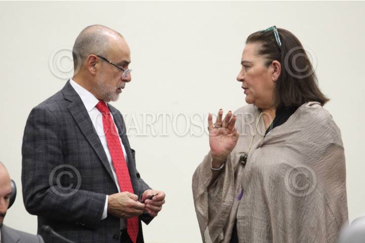 CIUDAD DE MÉXICO, 25MARZO2026.- Los consejeros electorales Jorge Montaño y Guadalupe Taddei conversaron durante la Sesión Ordinaria en el Instituto Nacional Electoral. FOTO: GRACIELA LÓPEZ/CUARTOSCURO.COM