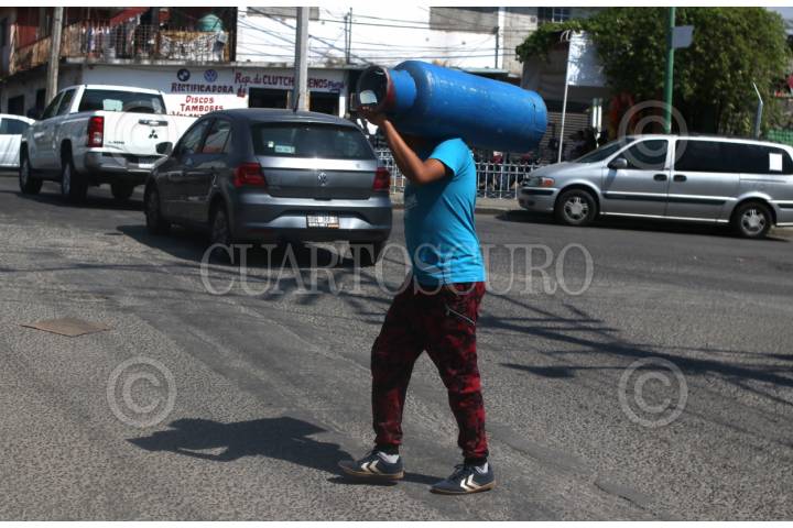 CUERNAVACA, MORELOS, 04FEBRERO2026.- Escena cotidiana en una calle de la capital de Morelos, un joven carga con un cilindro de gas para ser rellenado en una gasera. FOTO: MARGARITO PÉREZ RETANA/CUARTOSCURO.COM
